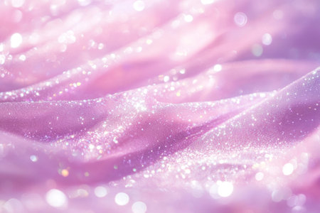 A soft pastel pink and lilac background with an ethereal, iridescent glitter effect that shines under the light.