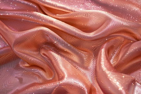 This stunning image features a soft, shimmering fabric in rose gold, highlighting its intricate texture and subtle sparkle, perfect for luxurious design projects.