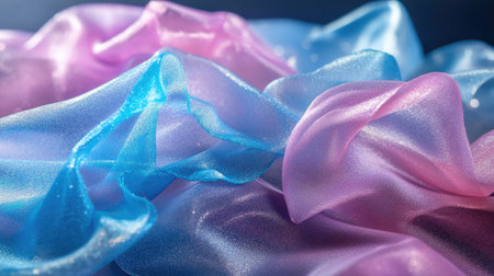 Transparent cloth in bright colors with shimmering glitter accents. Generative AI illustration
