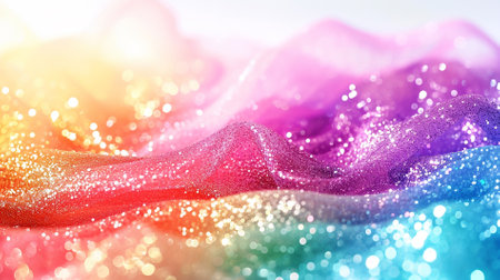 A vibrant soft pastel fabric features an iridescent shine and glittery texture, creating a dreamy and ethereal background perfect for artistic projects.