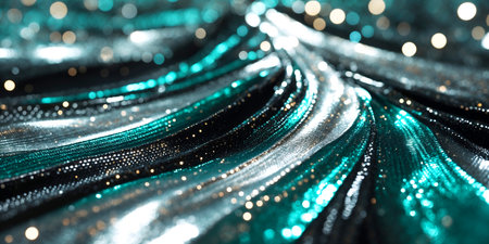 Elegant Teal & Turquoise Silk Satin Fabric Abstract Background with Glitter Shimmer - Long Exposure Photography