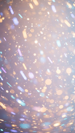 A soft focus background filled with numerous bokeh lights in shades of gold, pastel blue, and lavender, creating a dreamy and ethereal atmosphere.