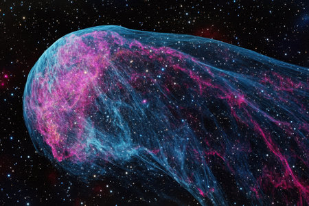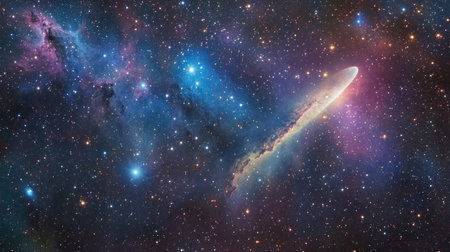 a tail flying radiantly across a starry sky, passing colorful nebulae generative ai