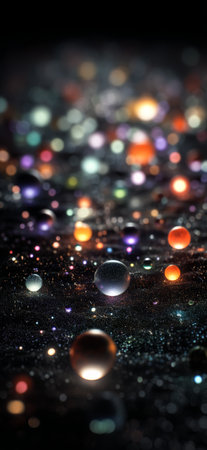 Shimmering bokeh texture on black background creating varied depth and light intensity