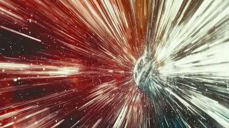 A captivating cosmic scene showcasing an explosion of vibrant colors and light rays, creating a sense of depth and infinite motion in the vast universe.