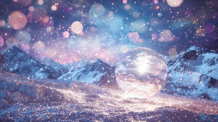 A tranquil winter scene with shimmering snow, a gleaming globe reflecting stars, and a vast night sky filled with twinkling constellations.