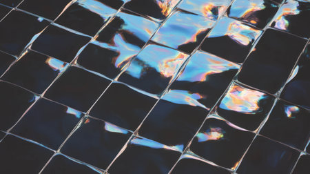 Glass tiles with smooth surfaces and geometric patterns reflecting light in a modern design