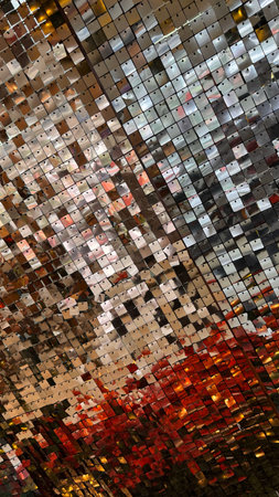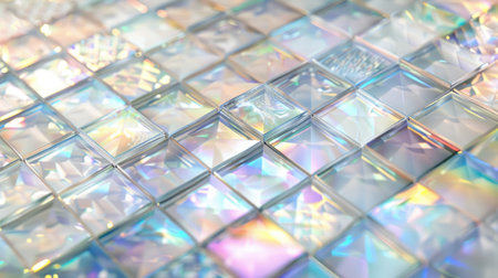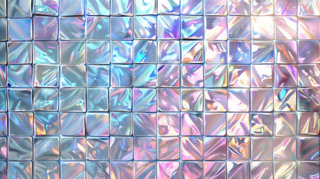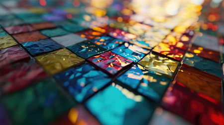 A Colorful Mosaic Featuring Reflective Squares That Exude Sparkling Hues and Designs