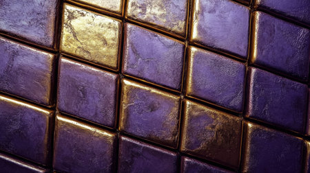 Close-up view of textured tiles featuring rich purple and gold colors arranged in a checkerboard style, perfect for modern backgrounds or artistic applications.