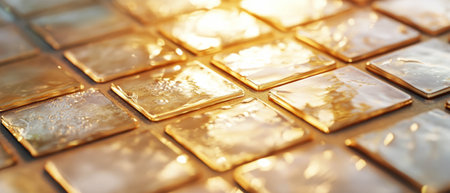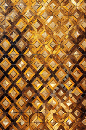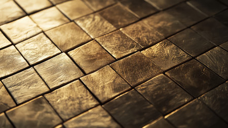 Patterned gold mosaic tiles with gentle depth-of-field and elegant lighting for high-end textured background