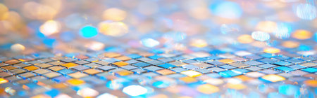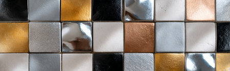 Glass mosaic with holographic effect. Trendy tiles fashionable geometric shapes banner