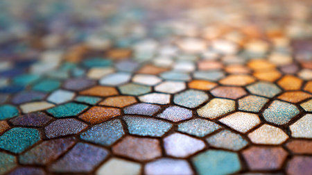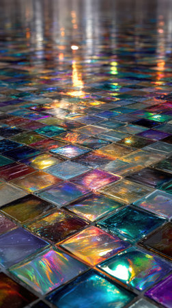 Explore a stunning close-up image featuring a vibrant mosaic texture with colorful reflections. Ideal for artistic projects, backgrounds, and creative designs.