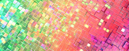Glowing abstract mosaic tiles with vibrant hues for creative artwork and wallpaper