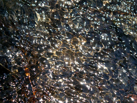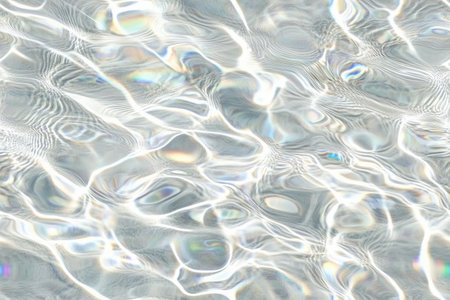 Close-up of water surface with sunlight creating shimmering patterns and reflections. The image captures the beauty of light and water interaction.