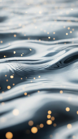 Gentle waves move gracefully across the surface, illuminated by soft light that creates a sparkling effect. The tranquil water captures the beauty of nature in its flowing rhythm.