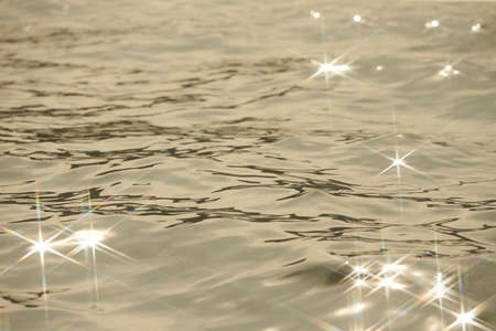 Sea water surface with golden glowing sun reflections. Abstract nature background.
