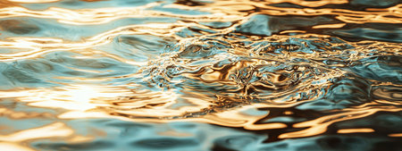 Close-up of water ripples with golden light reflecting on the surface, creating a mesmerizing abstract pattern.