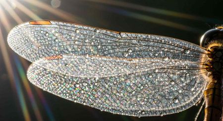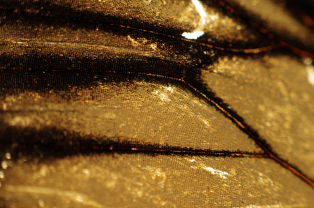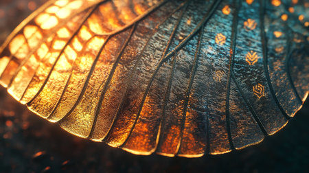 A stunning close-up shot showing the intricate details of an insect's wing. The golden light accentuates its beauty.