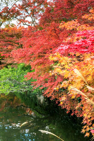 Kyoto Hagino Small diameter of bamboo forest in autumn leaves season Green of bamboo and cedar gro plants and red of autumn leaves