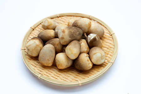 Korean food ingredient, Tteok sliced rice cake on bamboo basket