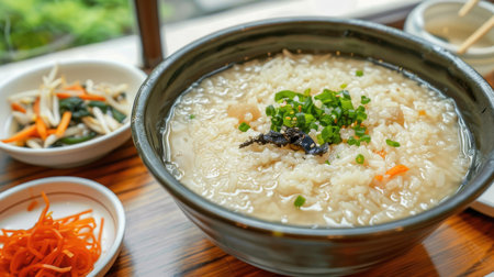 AI Generated. A creamy bowl of abalone porridge with a rich broth