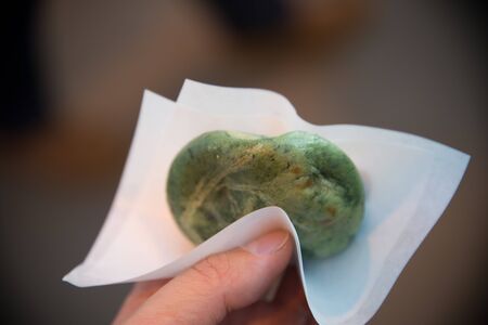 Japanese cuisine: stiffed seaweeds called Okyuuto or Okyuto with toasted soybean flower and sugar