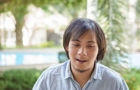 young asia man on outdoor at natural background
