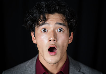 Surprised young man with wide open mouth and eyes