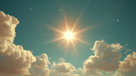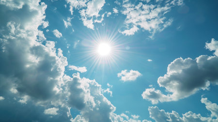 Radiant Sunlight and Celestial Blue Beauty in a Bright Summer Sky with Fluffy White Clouds Above