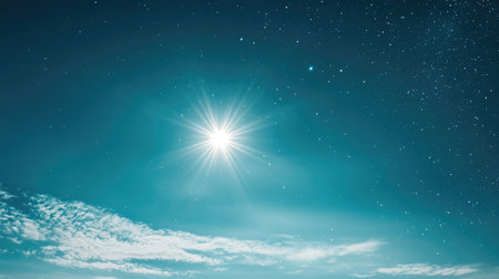Digital artwork of the sun is shining against a blue sky, high quality, high resolution