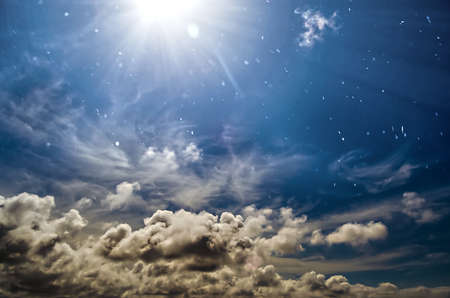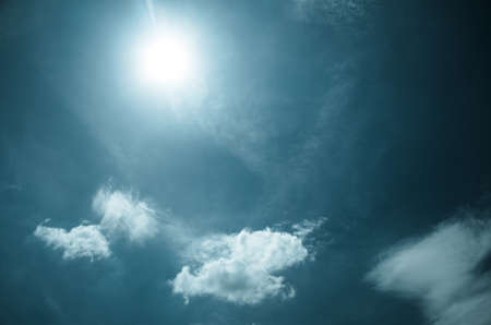 blue sky with clouds and sun reflection.The sun shines bright in the daytime in summer