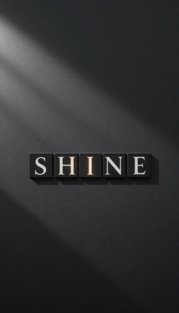 A captivating image featuring the word SHINE in elegant letters against a dark background, enhanced by dramatic light and shadow. Perfect for inspirational projects.