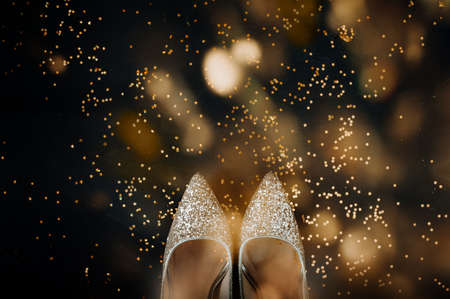Sparkling high heel shoes on a dance floor at a party, capturing the essence of celebration and glamour