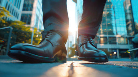 Climbing the stairs of career growth: Close-up of business people's legs in a city symbolizing skill improvement and salary increase. Concept Career Growth, Skill Development, Business People