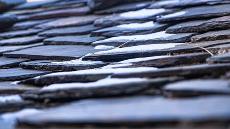 Colorful slate roof tiles, abstract background. Architectural design and construction texture concept