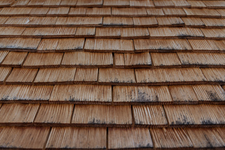 Colorful wooden roof shingles in close-up