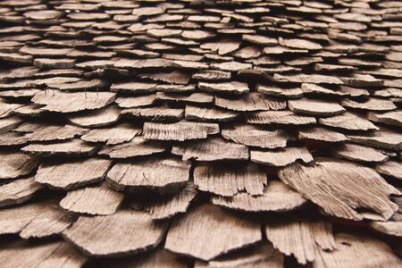 texture of old wooden spill or wooden tile on a roof
