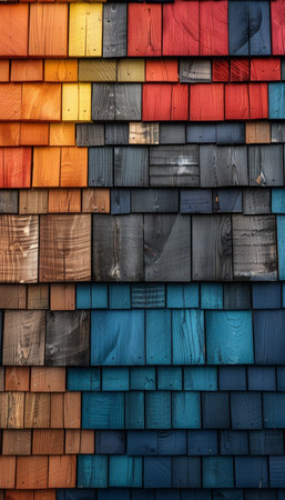 Vibrant mosaic wood veneer tiles abstract colorful background with textured scales