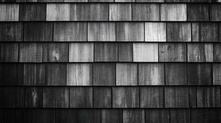 Black, flat, shingle roof texture background banner, a seamless pattern of black, horizontal, wooden wall cladding for web design and print. Wide panorama. --chaos 30 --ar 16:9 --v 6.1 Job ID: b989459c-d7f7-4e24-9b13-dc4ad013c544