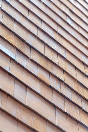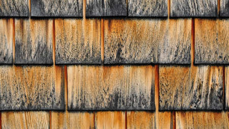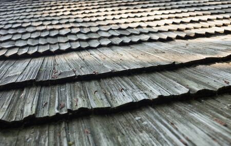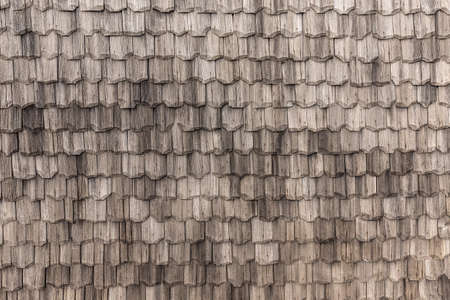 Old wooden shingle roof. Wooden surface texture.