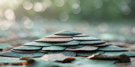 This image features a close-up view of roofing shingles with unique textures and colors, showcasing the beauty and durability ideal for home design projects.