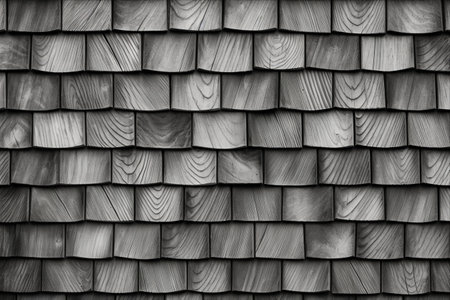 Wooden shingles with overlapping pattern showcasing rich texture and warm hues for backgrounds