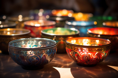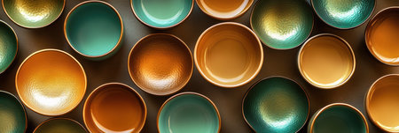 Vibrant colors adorn ornate earthenware bowls in East Asian cultures generated by artificial intelligence