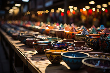 Colorful Ceramic Bowls For Sale at the Market in Istanbul, Turkey