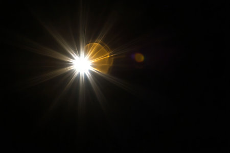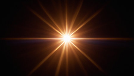 Golden Lens Flare Creating a Magical Atmosphere with Warm Light Effects on a Dark Background