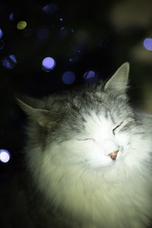 cute cat christmas portrait with lights