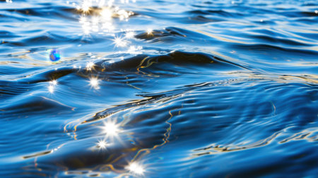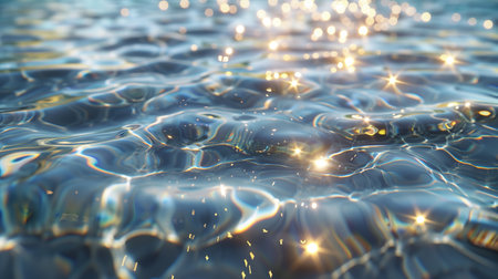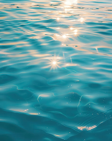 This stunning image captures gentle waves reflecting soft light, creating a tranquil atmosphere filled with sparkling highlights and soothing textures.