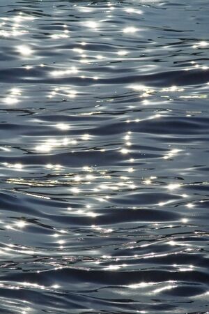 Abstract view of clear water with sparkling sunlight and small waves creating a tranquil, natural scene.