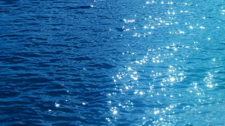 Blue water surface with sun reflection. Abstract background and texture for design.