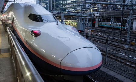 TOKYO, JAPAN - MAY 30TH, 2016. Japanese bullet train in Tokyo Railway Station.